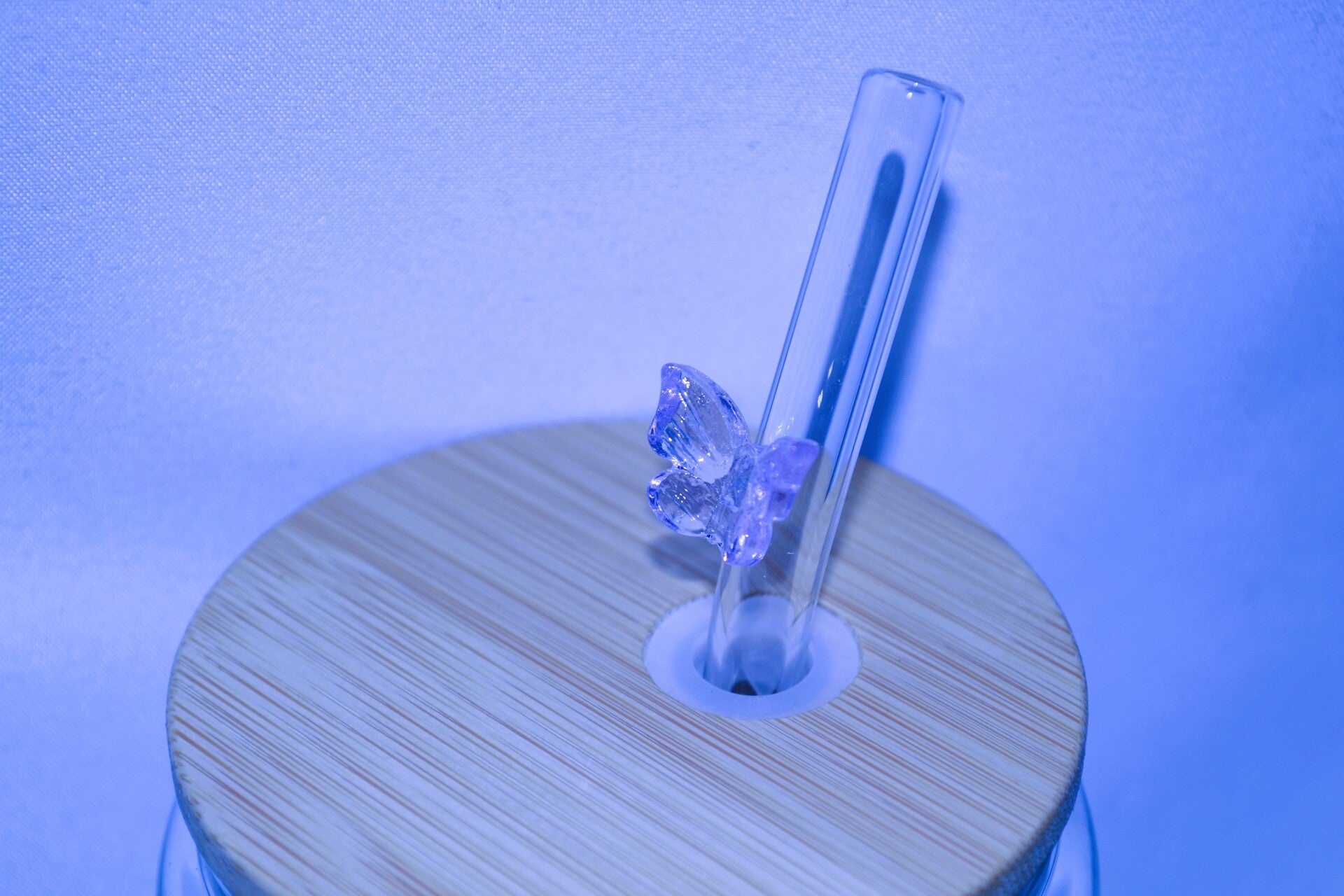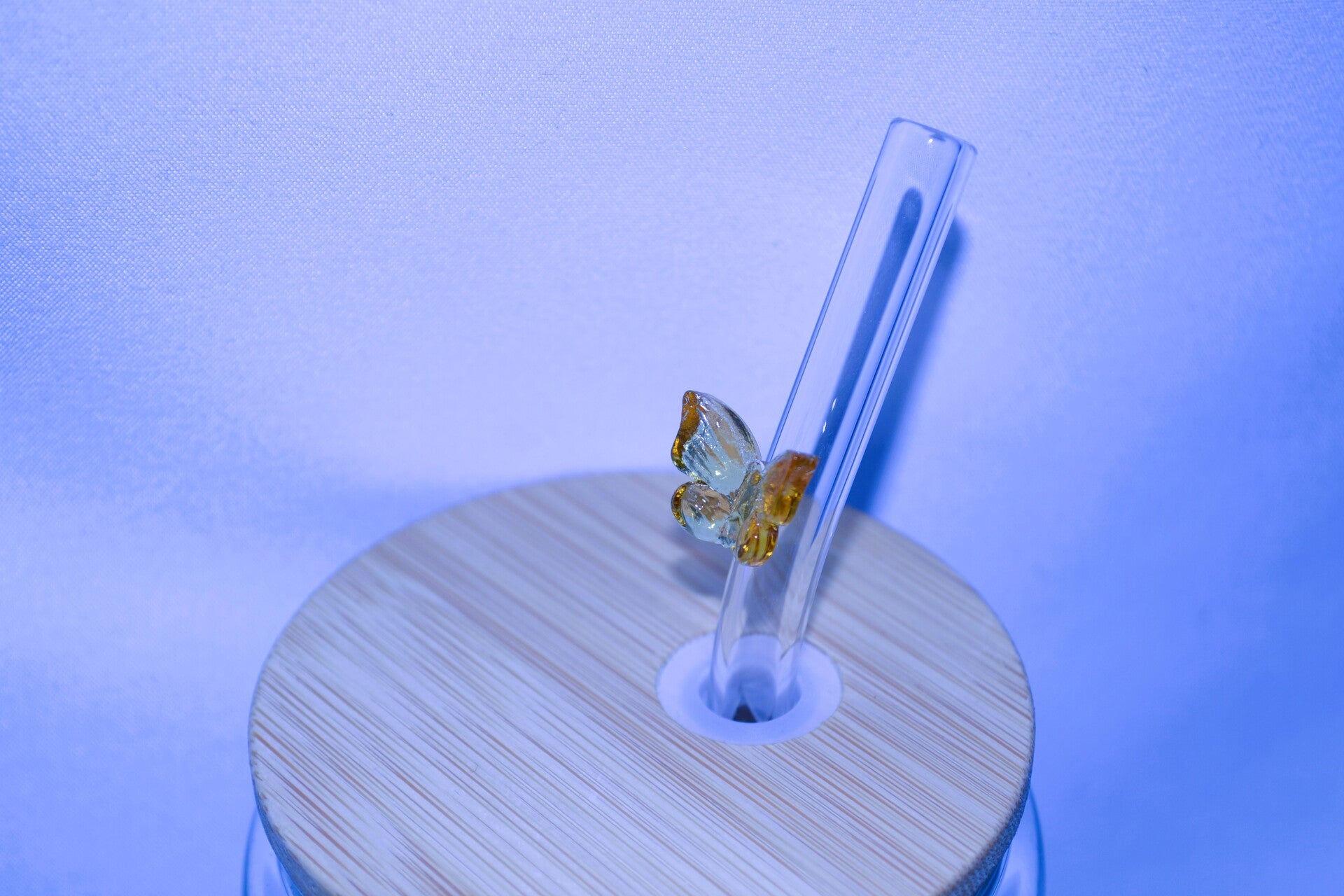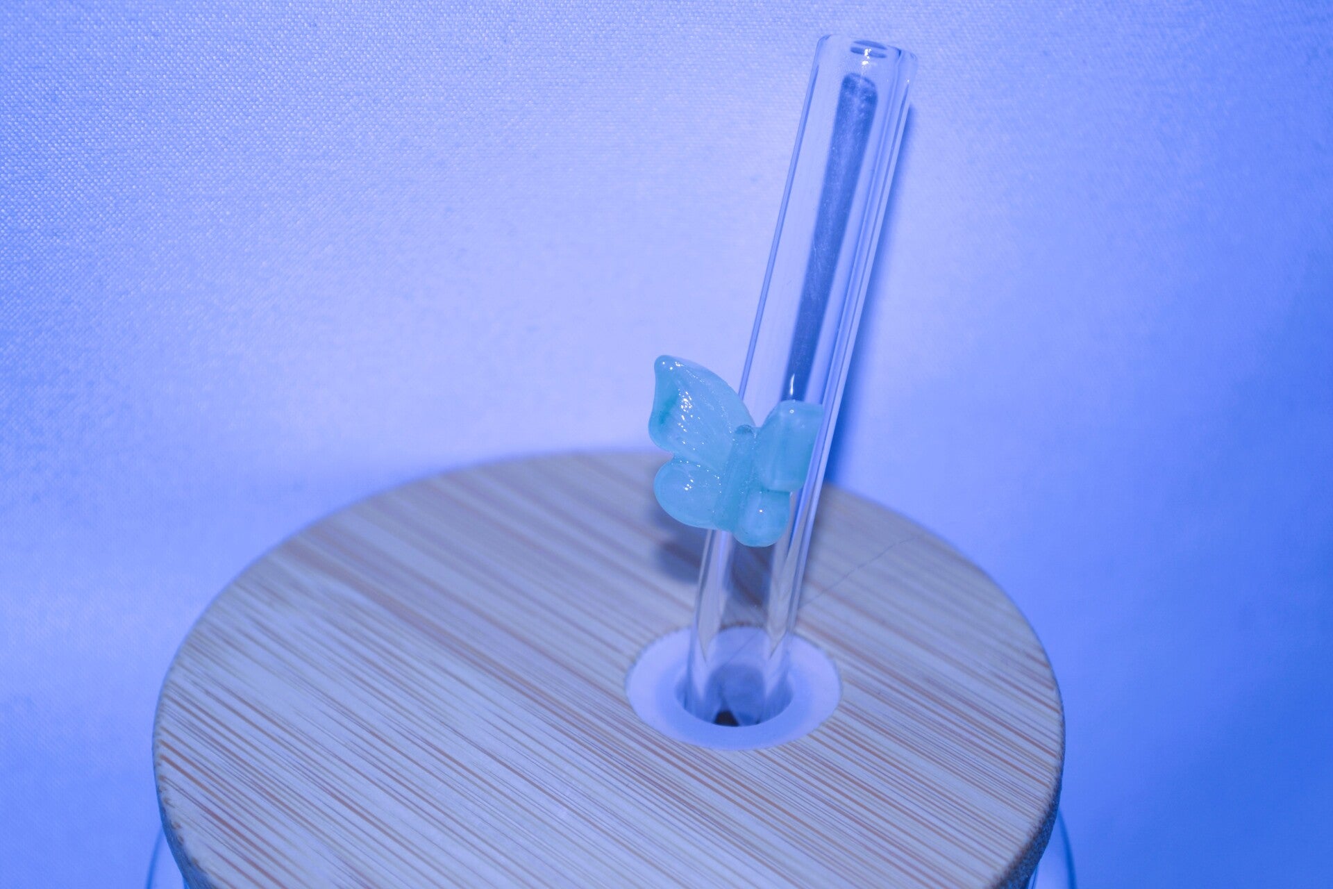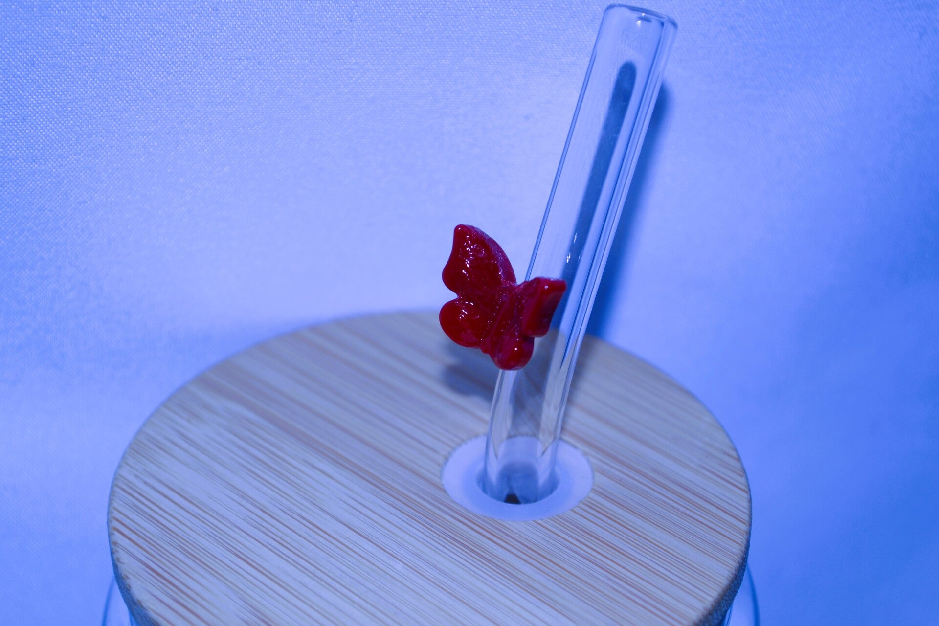 Glasstrohhalm mit Schmetterling