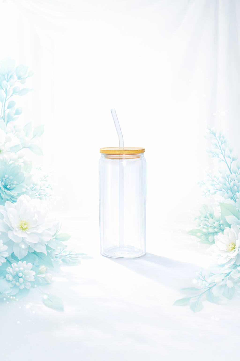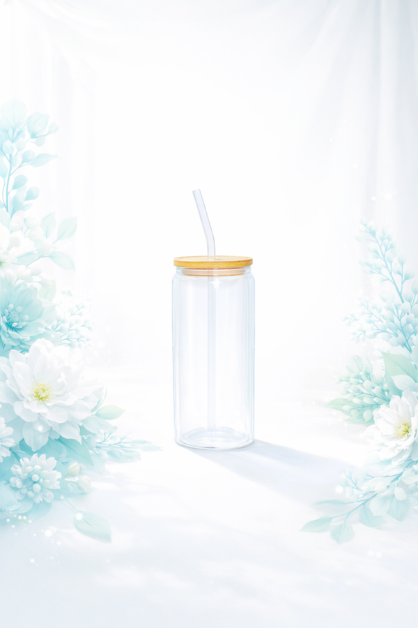 High Borosilikat Gläser, Bambusdeckel und Glasstrohhalm mit 20-26cm Länge und 6mm Durchmesser