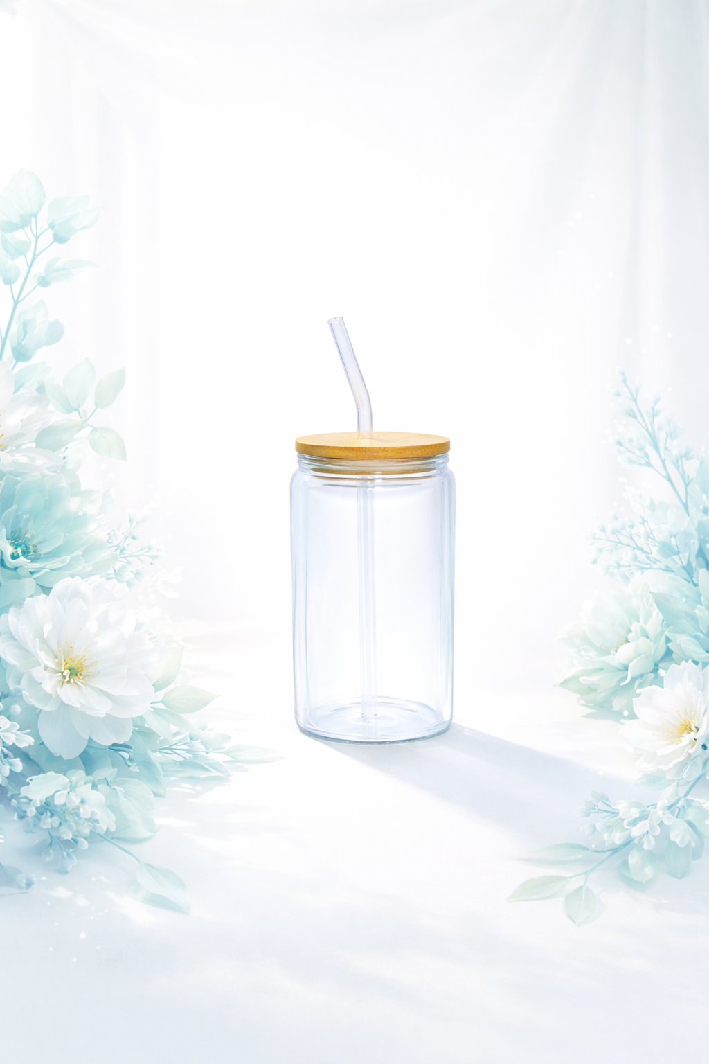High Borosilikat Gläser, Bambusdeckel und Glasstrohhalm mit 20-26cm Länge und 6mm Durchmesser